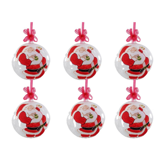 Set of 6pc Colorful Glass Christmas Ornaments (Red Santa)