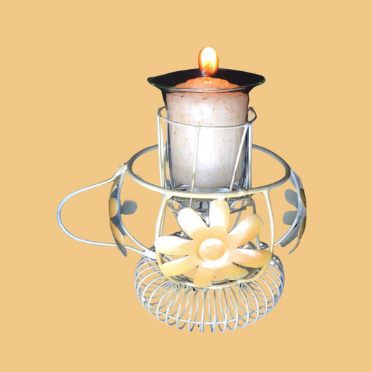 Tins and Wires Candle Holders with Glass Ornaments (Flower)