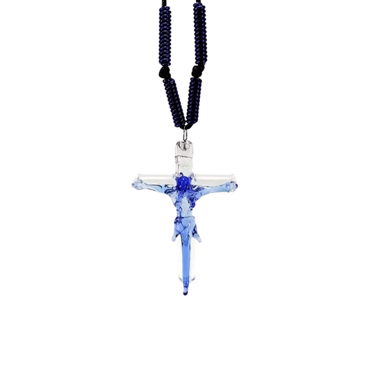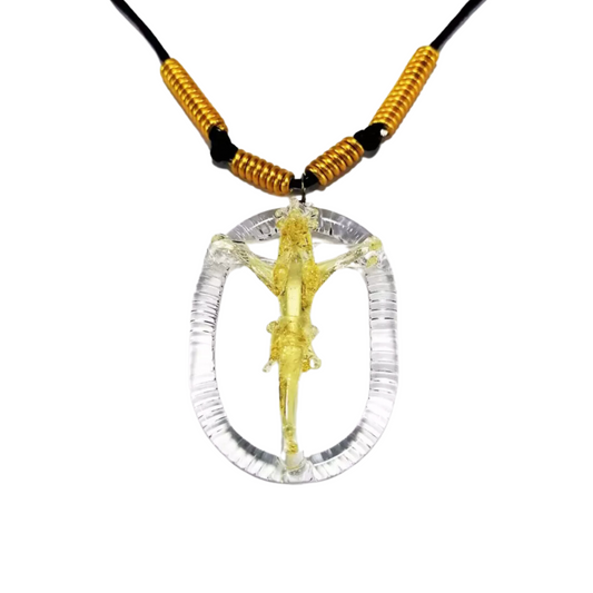 Cross Necklace Oval Glass Crucifix Jesus Pendant