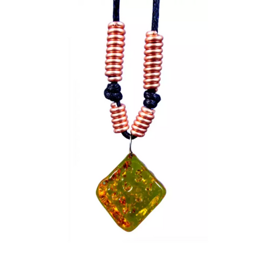 Square Crochet Glass Pendant with Alum Wire Accent Necklace