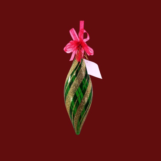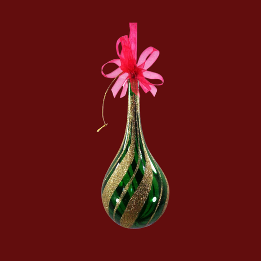 Set of 6pc Glitter Glass Christmas Tree Ornaments (Green & Gold Swirl)