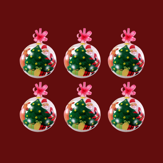 Set of 6pc Glass Christmas Tree Ornaments (Santa & Tree)