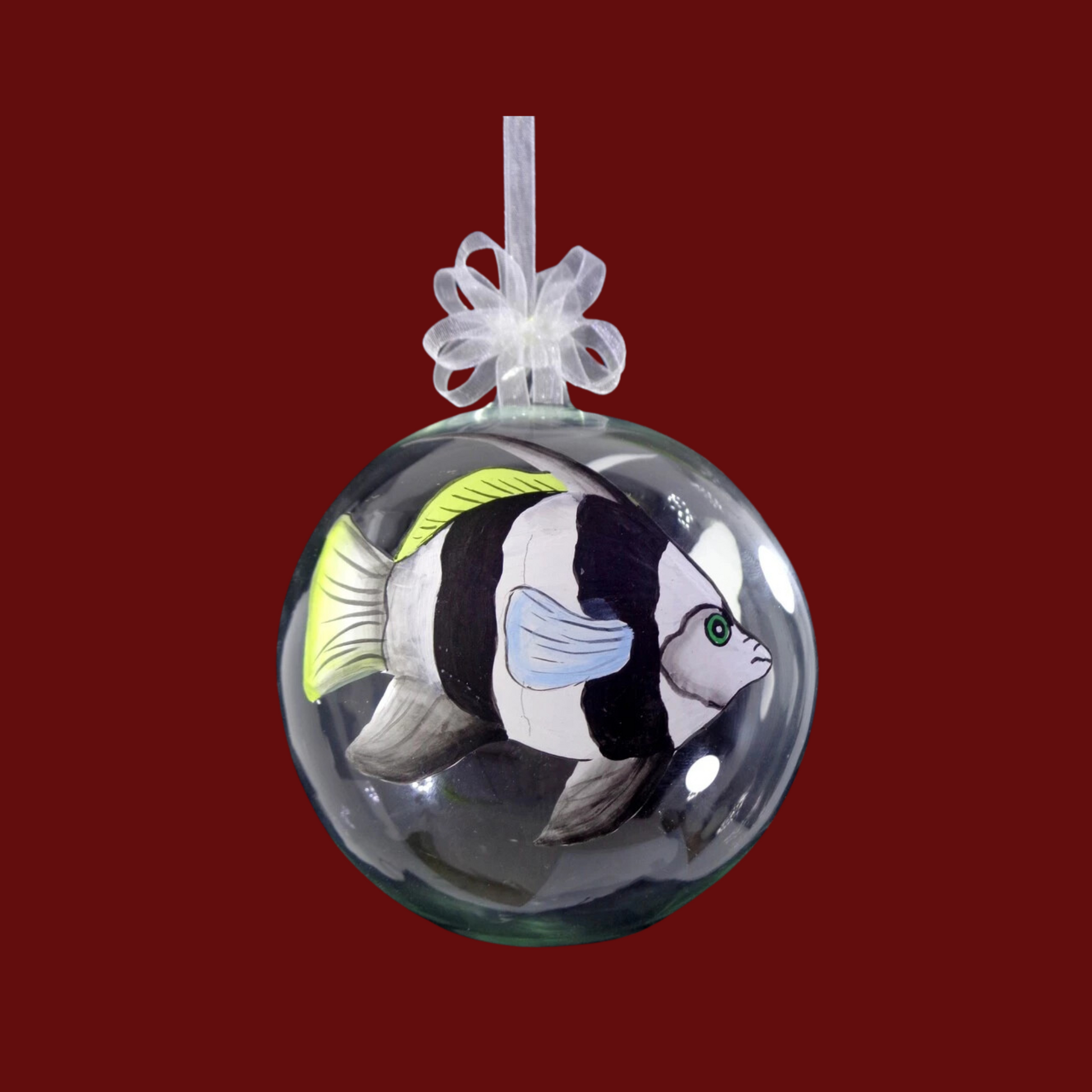 Set of 6pc Handpainted Glass Christmas Tree Ornaments (Fish in Nature)