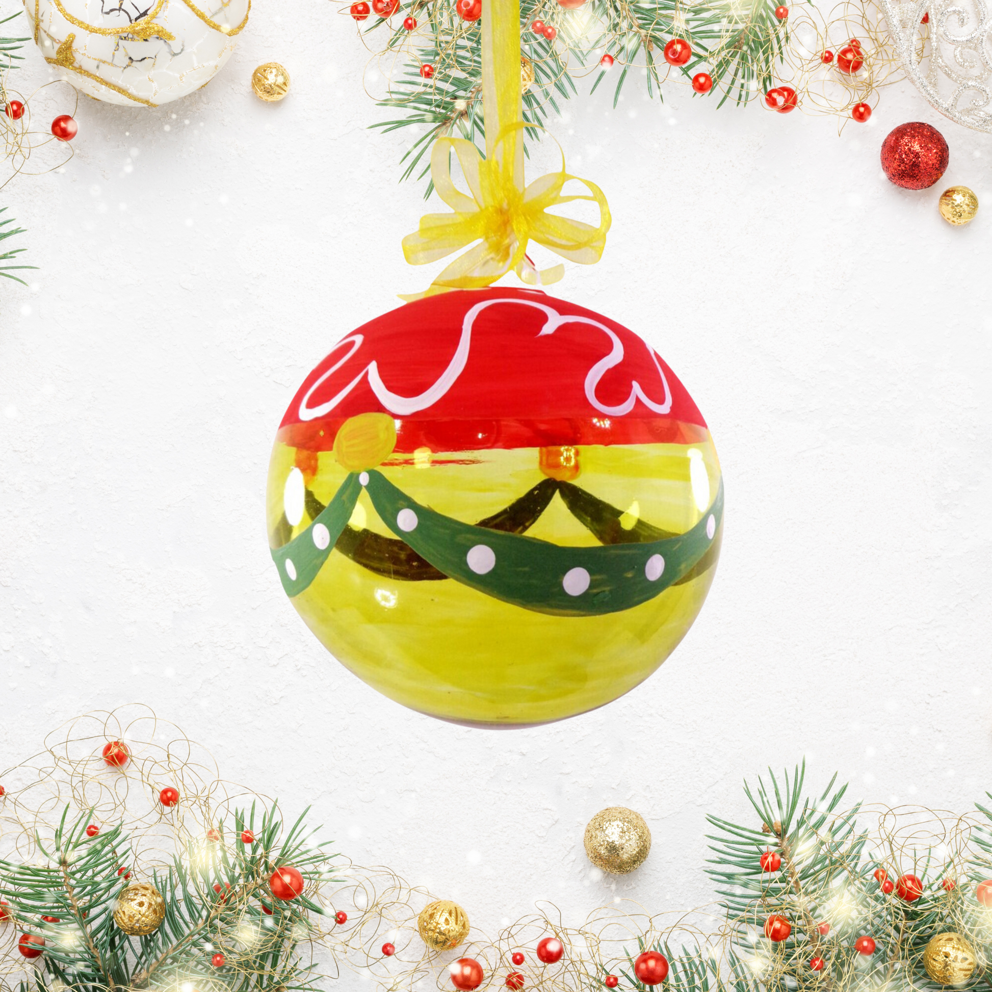 Introducing Colorful Handpainted Yellow Glass Christmas Ornaments from Liman Glass is a festive addition to your holiday décor or Christmas tree. Adding a much needed holiday vibe to your home this coming Holiday Season.