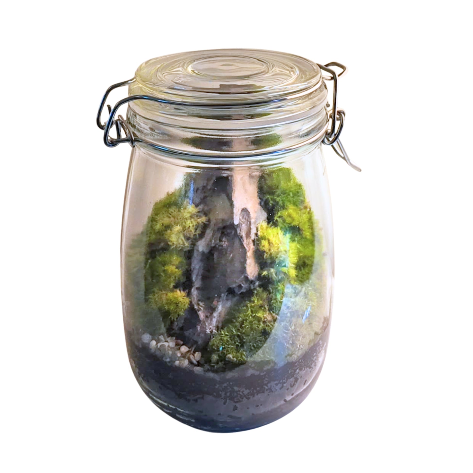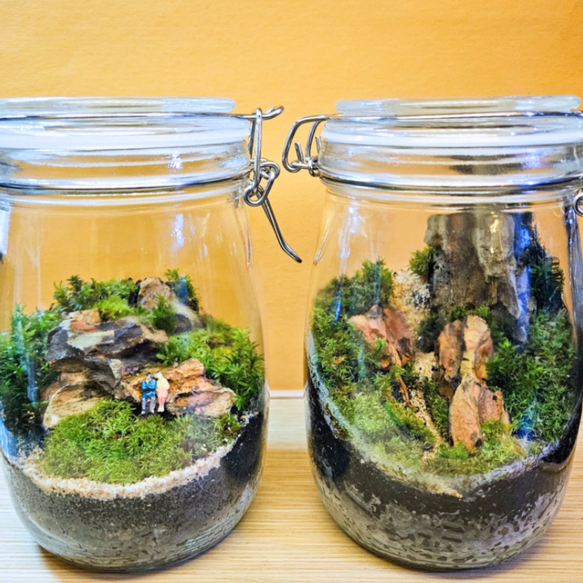 Discover the artistry of our terrariums, meticulously crafted with live moss and carefully selected elements to form a peaceful and enchanting atmosphere.