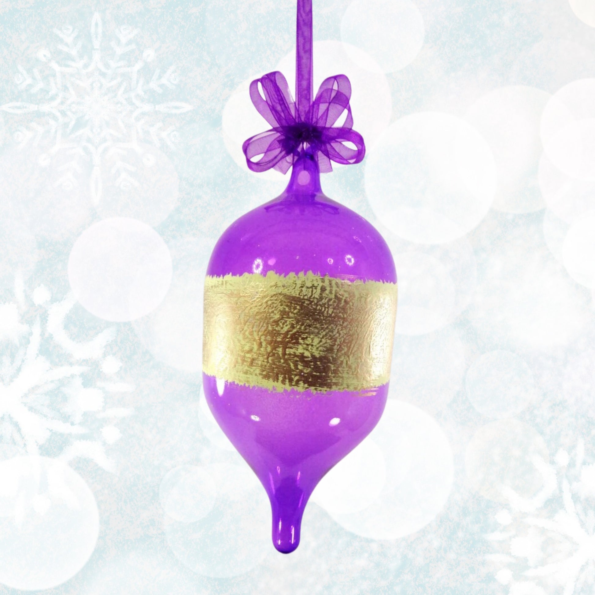 Set of 6pc Handpainted Glass Christmas Ornaments (Purple & Gold)