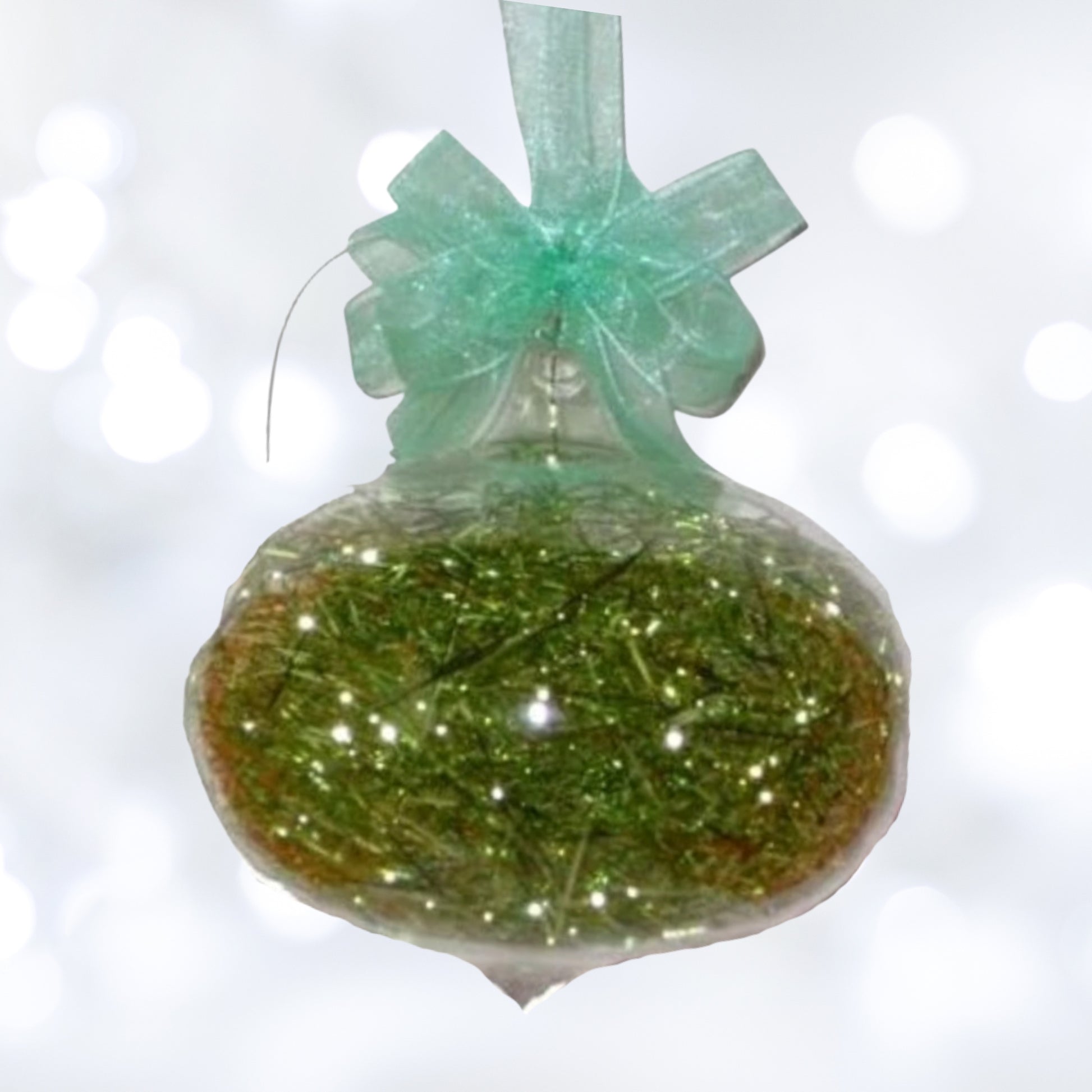 Set of 6pc Glass Christmas Tree Ornaments (Green Shreds Trumpo)