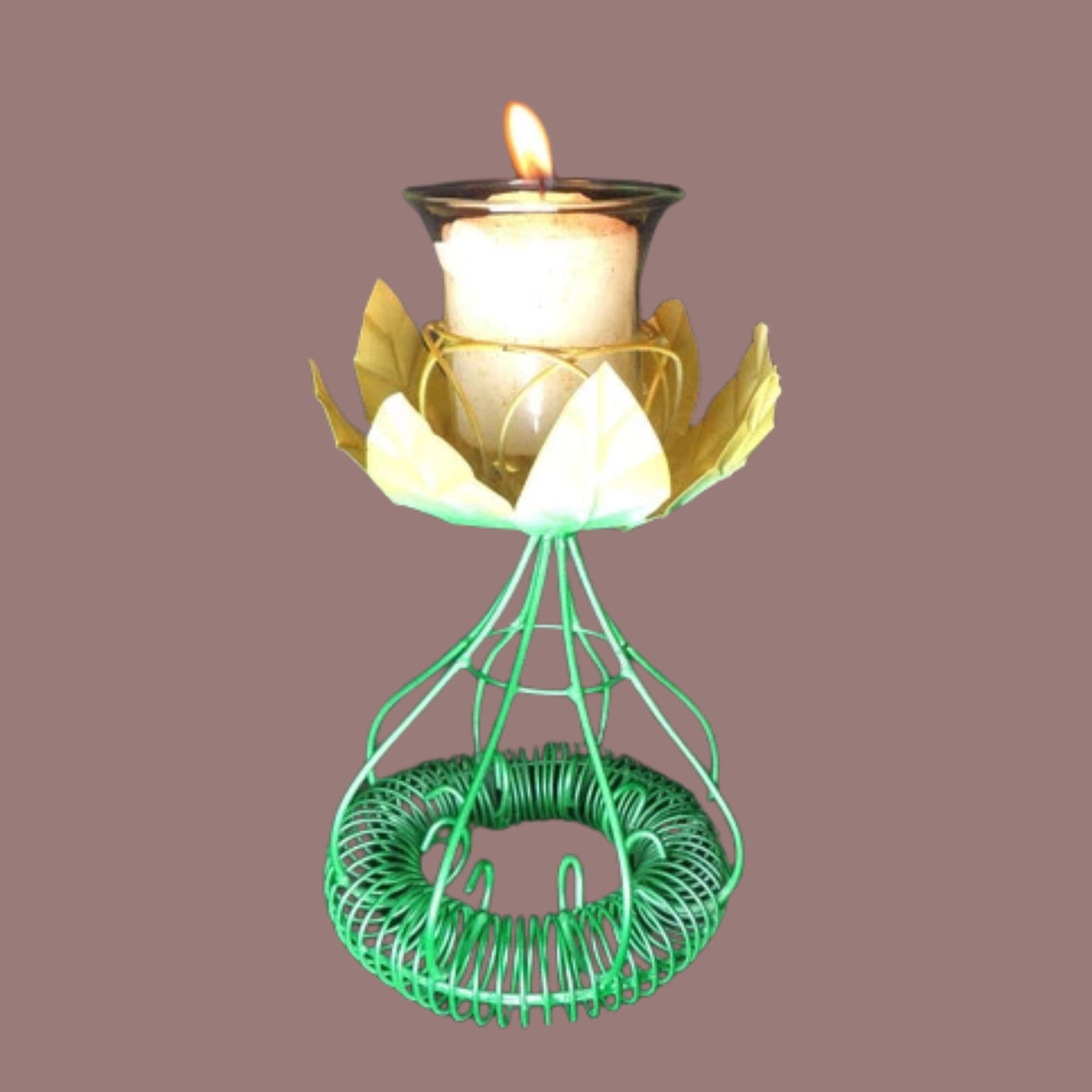 Tins and Wires Candle Holders with Glass Ornaments (Flower)
