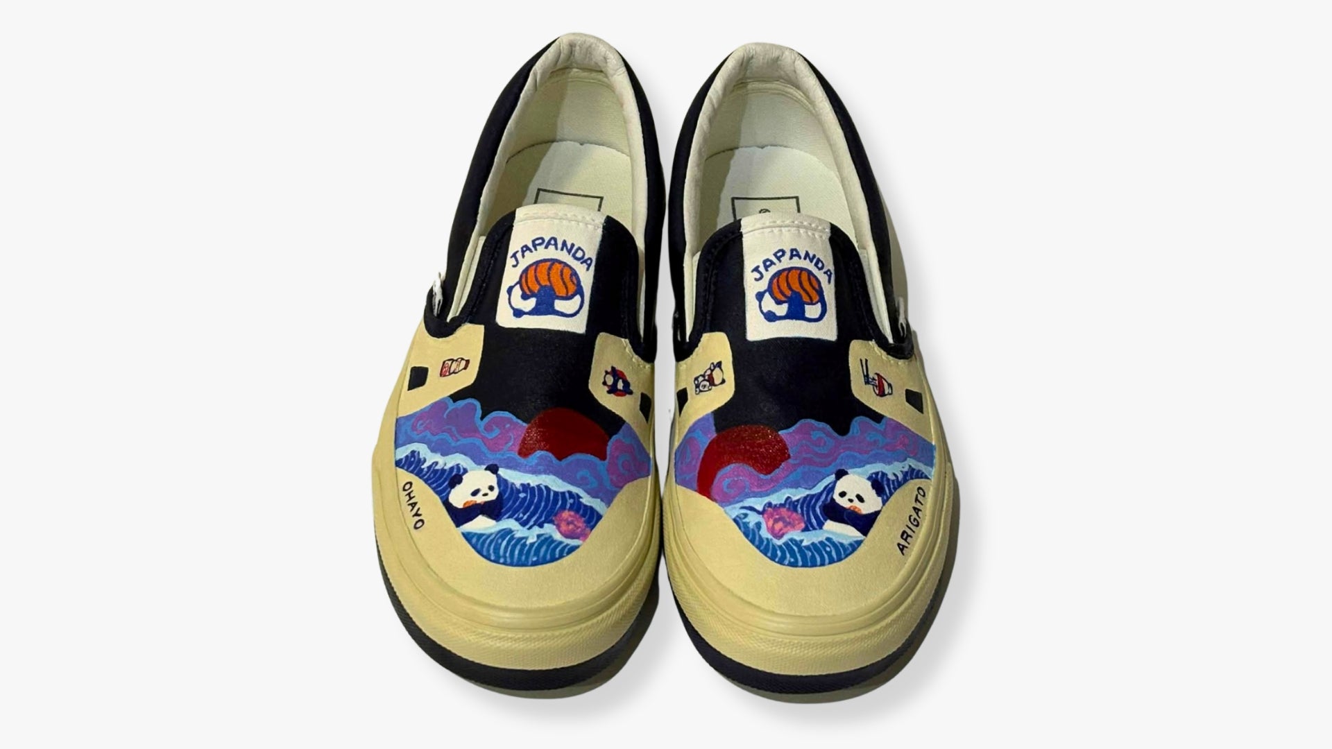 This piece shows love for Japan and pandas. From the iconic elements and food to simple Japanese greetings that gives joy. Ohayo is good morning in Japanese and it’s a way to remind us that each day is a fresh start and arigato is to help us become more grateful for the present time.